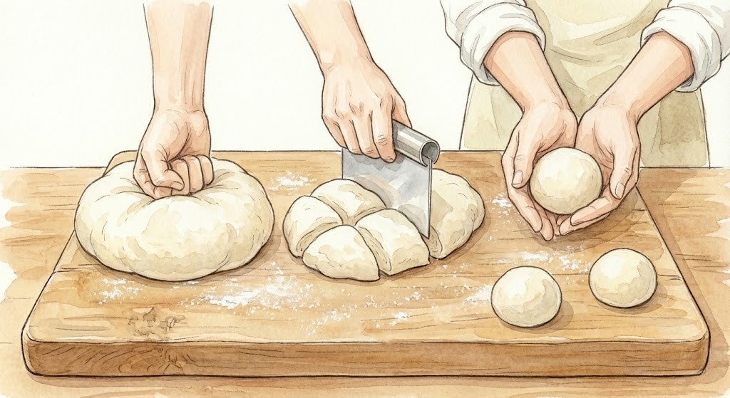 Step 4:ガス抜き(パンチ)・分割・丸め