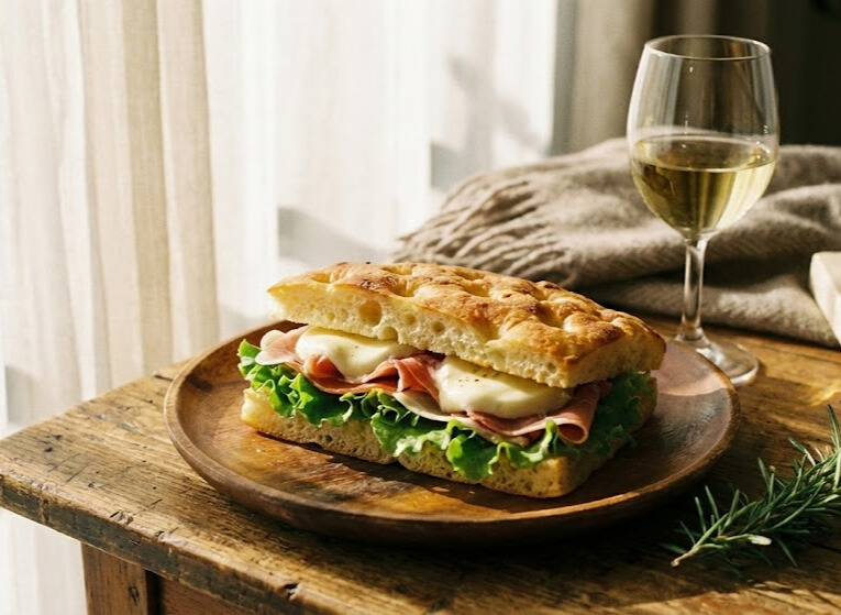 冷めたフォカッチャを厚さ半分にスライスして、具材をサンド!