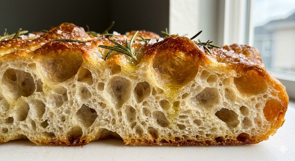 材料を混ぜて、時間をかけて休ませるだけ。 専用の道具も不要。100均の型を使って、お店のような「外カリッ、中モチモチ」の高加水フォカッチャが作れます。